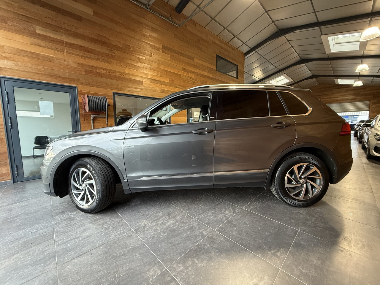 Karz vous propose cette Volkswagen Tiguan d'occasion de couleur gris fonce révisée et garantie !
