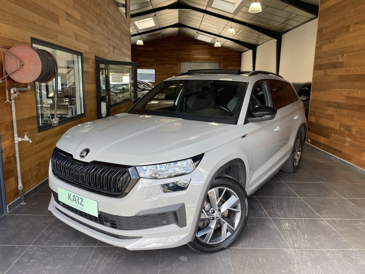 Karz vous propose cette Skoda Kodiaq d'occasion de couleur gris clair révisée et garantie !