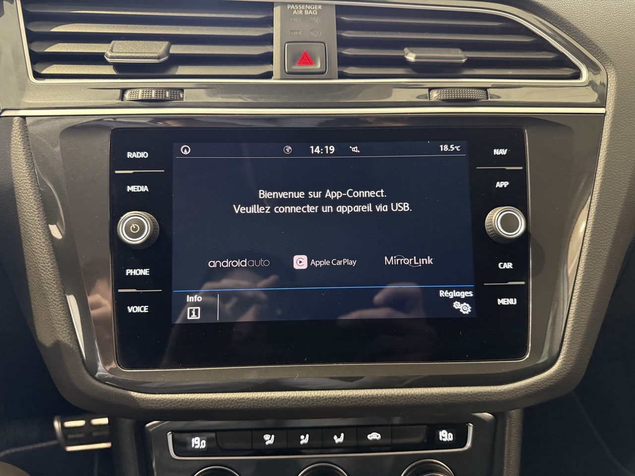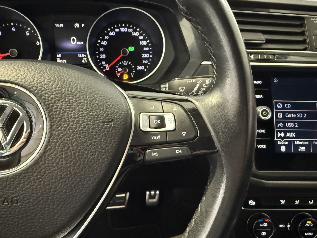 Il s'agit d'une Volkswagen Tiguan d'occasion de 2019 dans un excellent état et affichant 94 169km certifiés.