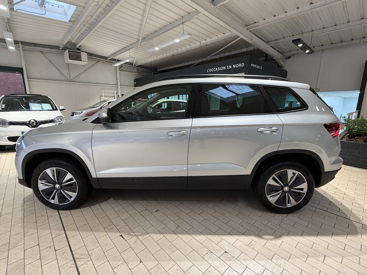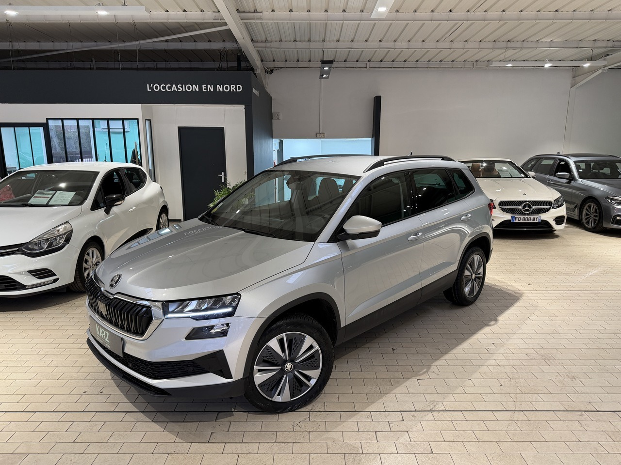 Karz vous propose cette Skoda Karoq d'occasion de couleur gris argent révisée et garantie !