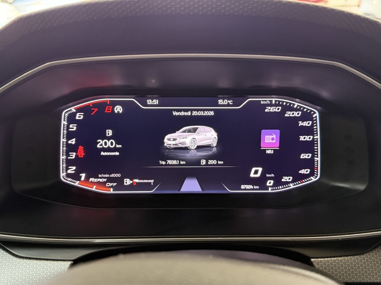 Il s'agit d'une Seat Leon d'occasion de 2020 dans un excellent état et affichant 87 924km certifiés.