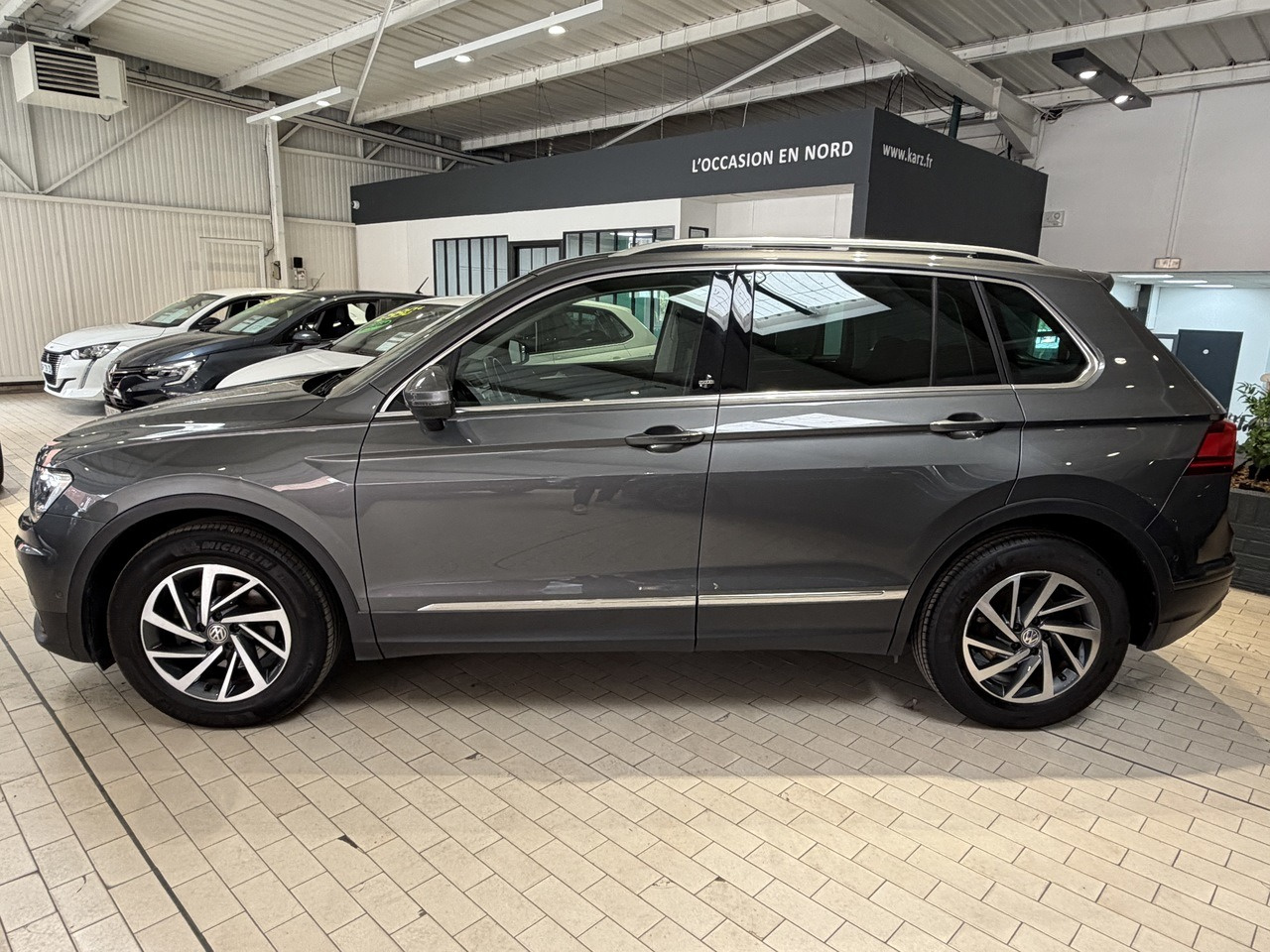 Karz vous propose cette Volkswagen Tiguan d'occasion de couleur gris fonce révisée et garantie !