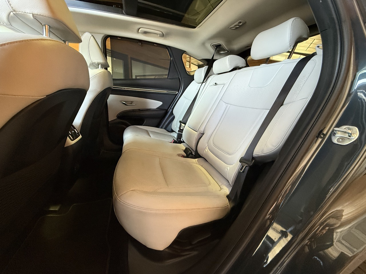 Il s'agit d'une Hyundai Tucson d'occasion de 2021 dans un excellent état et affichant 104 030km certifiés.